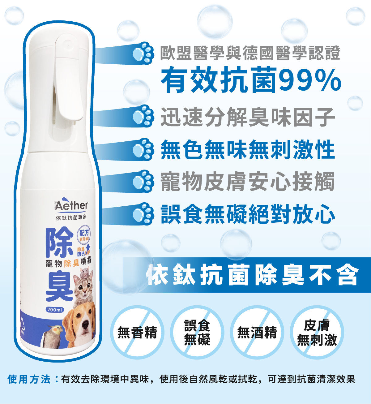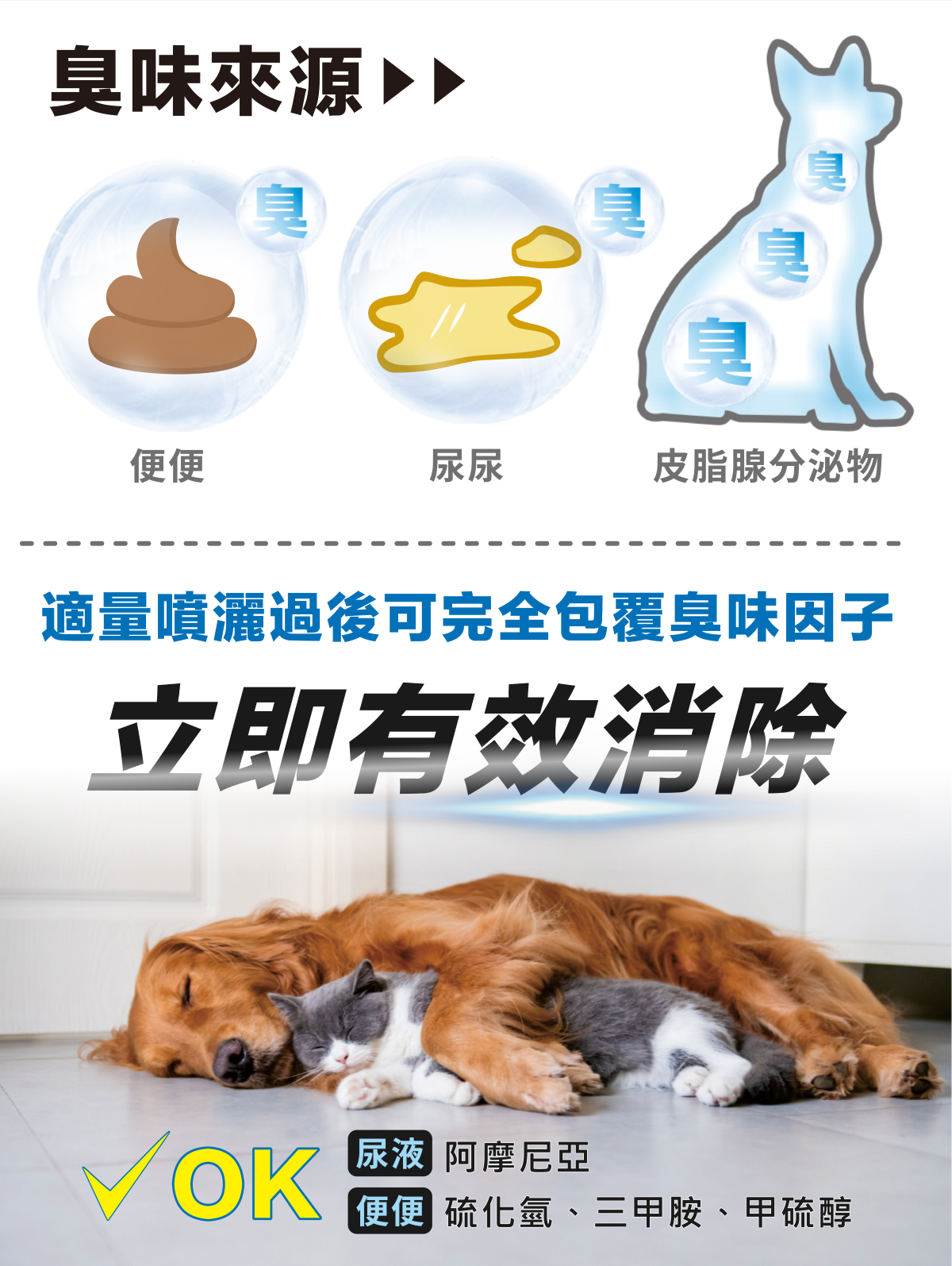 用途:有效分解寵物異味,達到除臭及抗菌效果