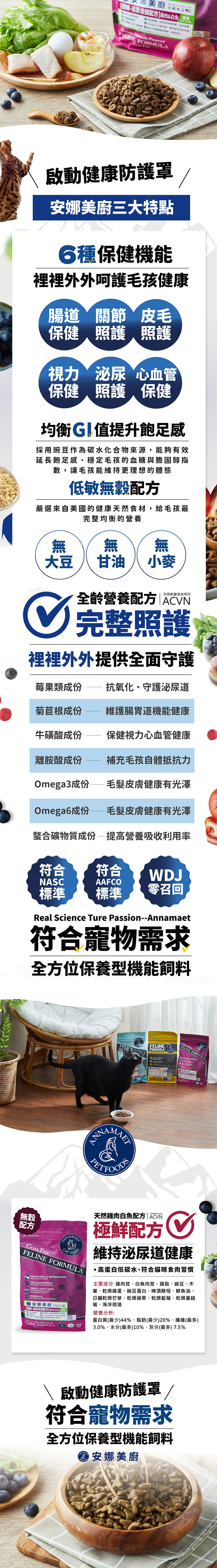 ● 含有來自藍莓和蔓越莓的天然抗氧化劑以及易吸收的敖合礦物質,符合全年齡的貓咪食用的營養水準。