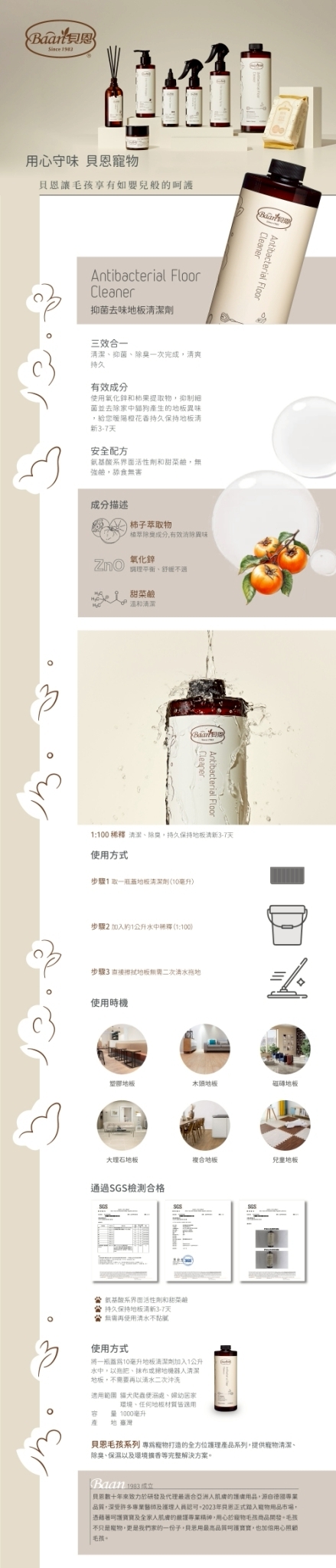 ▌氨基酸系界面活性劑和甜菜鹼,中性pH值溫和配方,無強 鹼,安全無毒不刺激,溫和清潔任何地板表面