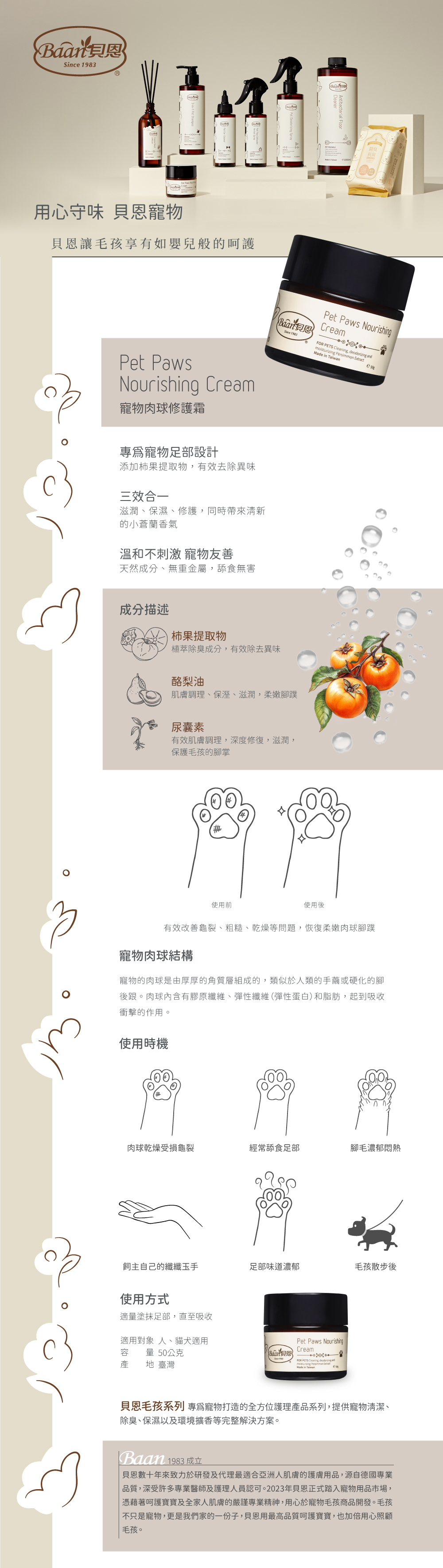 ★專為寵物足部設計,添加柿果提取物,有效去除異味,同時帶來清新小蒼蘭香氣。滋潤、保濕、修護三效合一,維持寵物足部舒適健康。