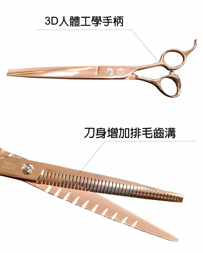 BasiC 培基 - 7吋玫瑰金排毛魔術剪 特色