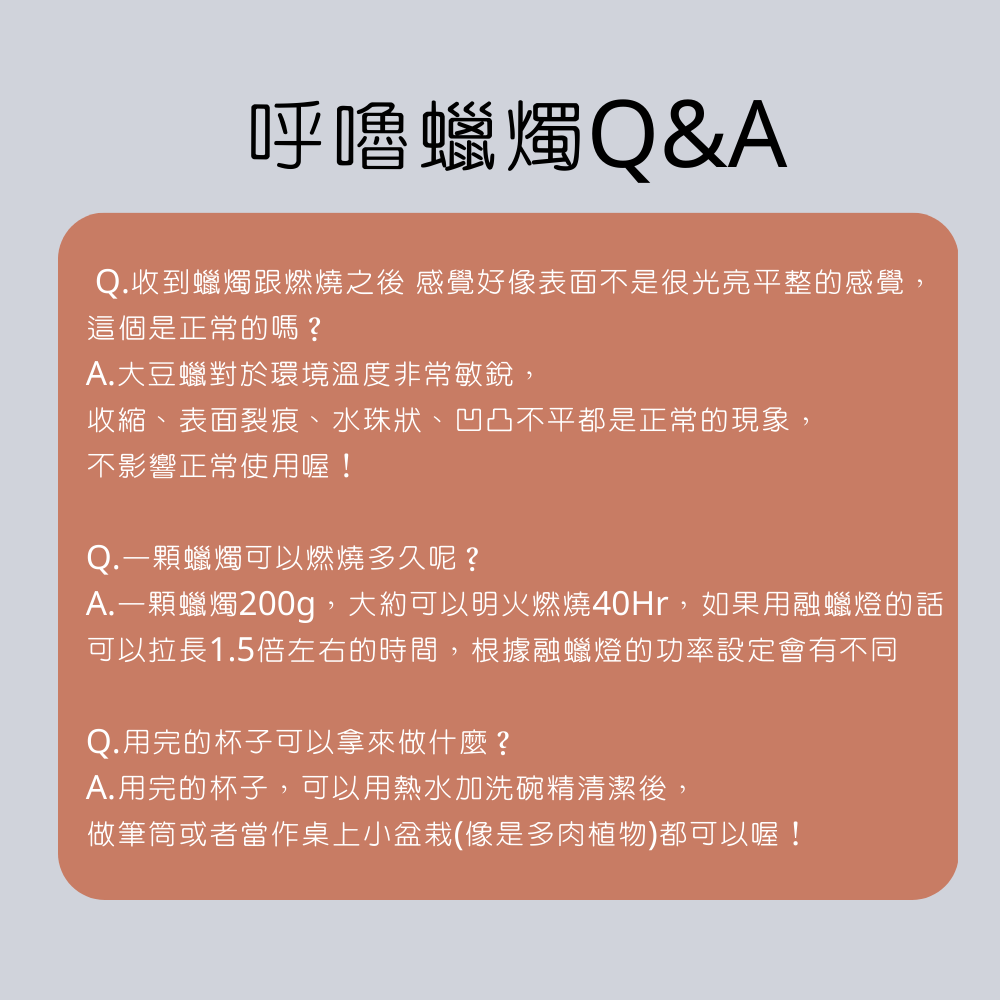 ● 純天然大豆蠟、山茶花油、精油與木天蓼粉末製作