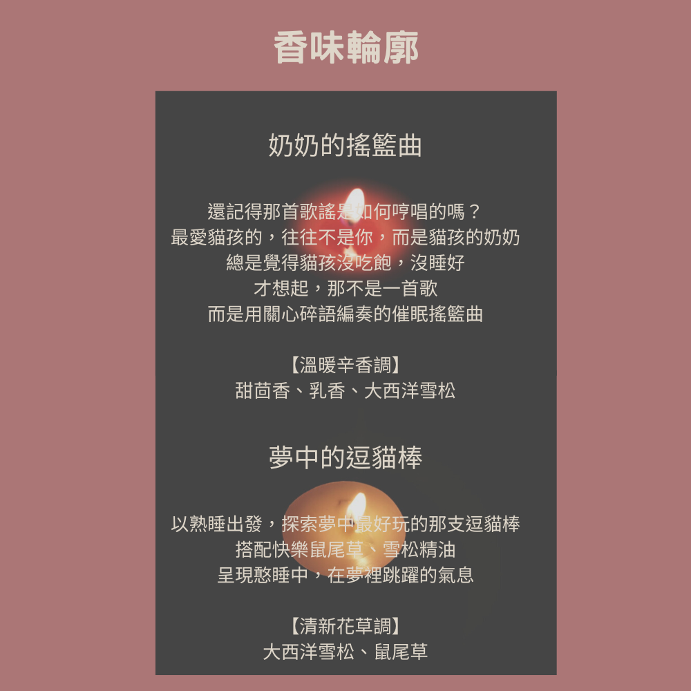 ● 純天然大豆蠟、山茶花油、精油與木天蓼粉末製作