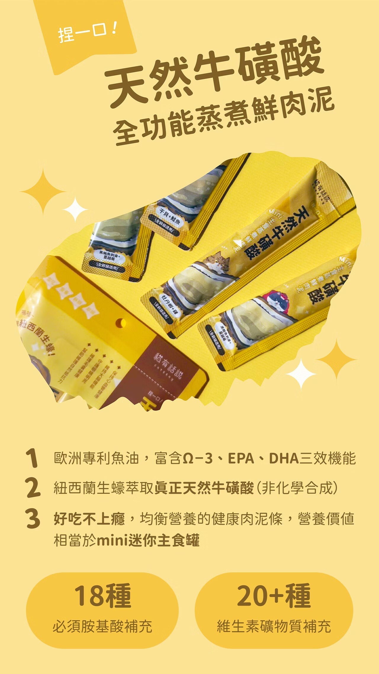 天然寶藏食材:天然牛磺酸 Mini主食貓條