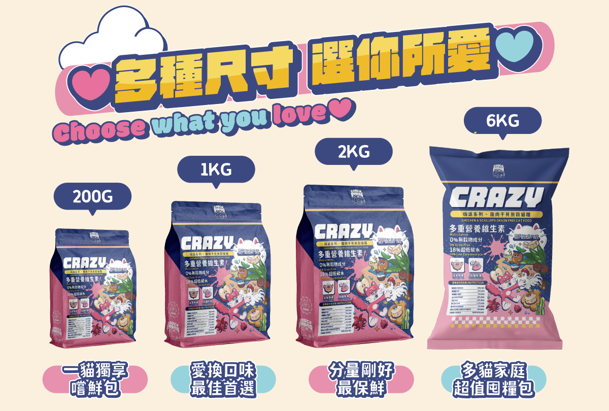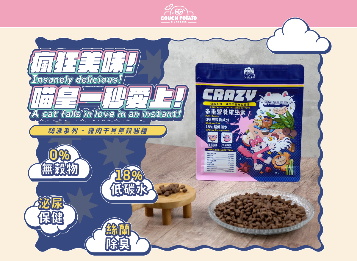 貓|Crazy嗨派無穀乾糧|雞肉干貝 - 『海陸蛋白雙饗宴~鮮啦!』