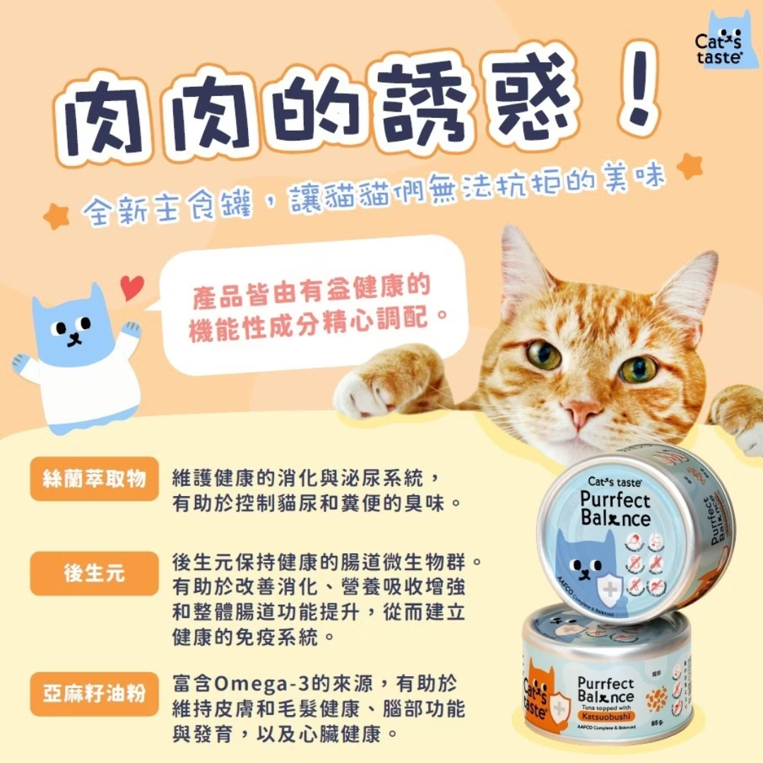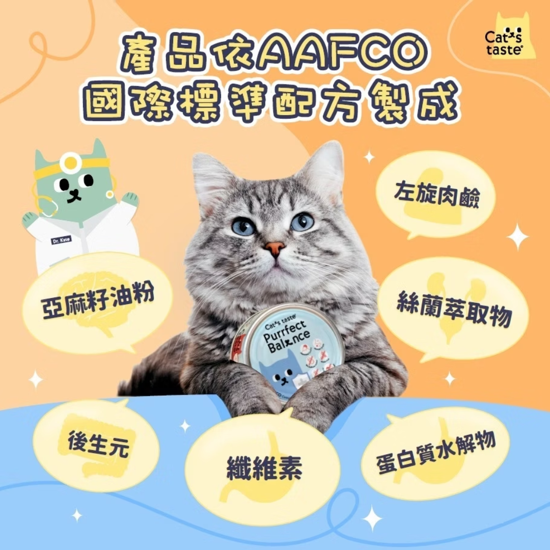 鮪魚肉湯主食罐鮪魚、鮪魚濃縮物、葵花油、鮪魚蛋白水解物、樹薯修飾澱粉、硫酸鈣、鰹魚乾、全蛋、氯化膽鹼、纖維素、絲蘭萃取物、亞麻籽油、左旋肉鹼、維生素預混物、家离蛋白水解物、氯化鉀、鋅、熱滅活副乾酪乳桿菌 Lpc-G110、焦磷酸鐵、錳、銅、牛磺酸、亞硒酸鈉、碘化鉀 |