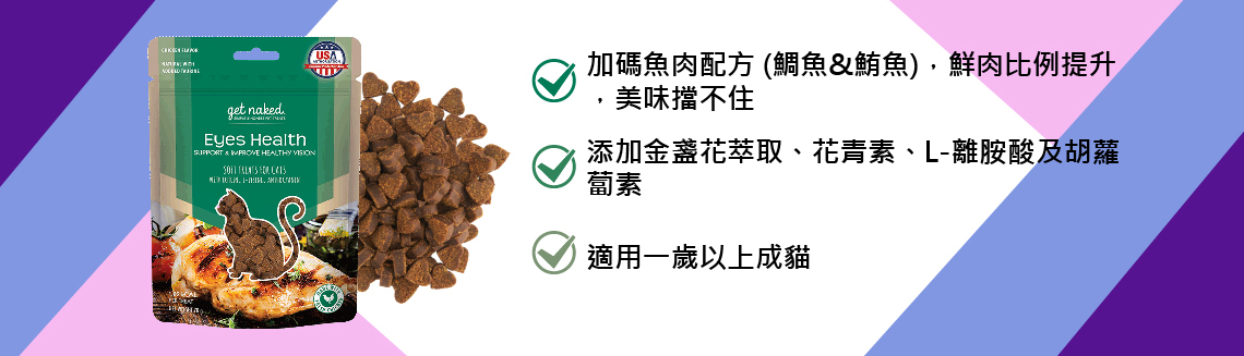 含多種保養眼睛之成份,並添加犬貓必須補充的離胺酸,協助合成蛋白質。