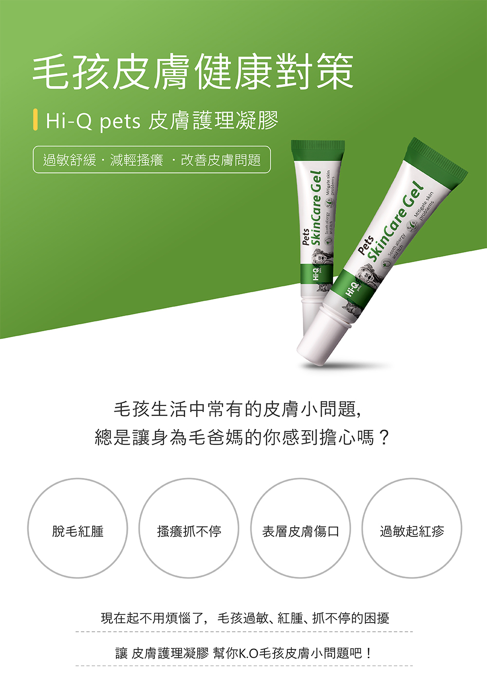 讓 Hi-Q pets 皮膚護理凝膠 幫你K.O毛孩皮膚小問題吧!