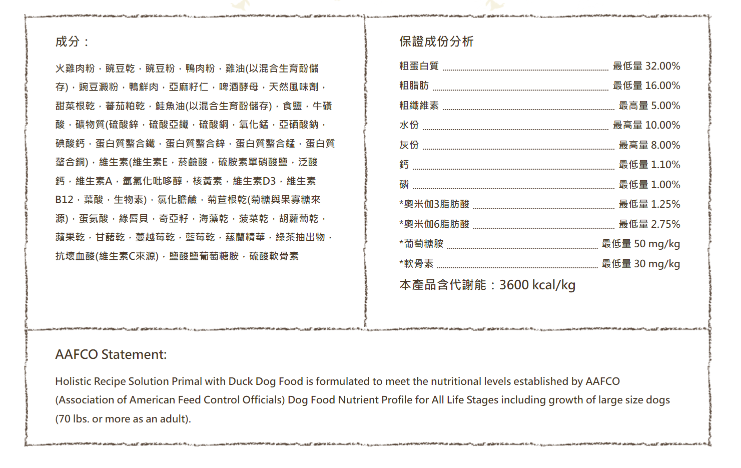 耐吉斯  源野高肉量無穀糧 - 全齡犬鴨肉配方 規格