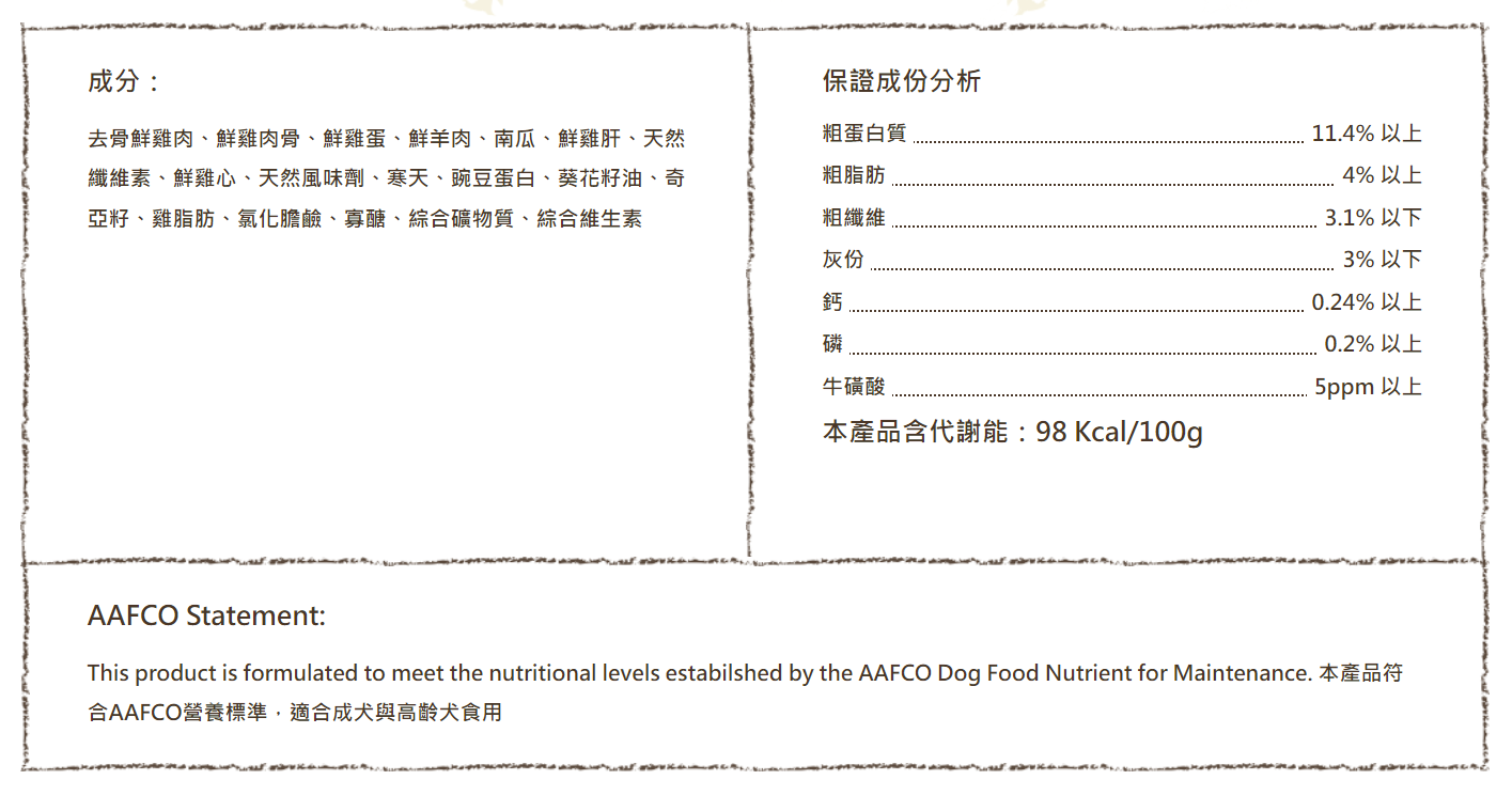▸ 貓狗以食肉為主,他們野生始祖是天生的獵食者,在野外獲取獵物時,會將獵物的鮮肉、內臟甚至部分的骨骼/軟骨一同攝入,以達到最均衡、最完整好吸收的營養。