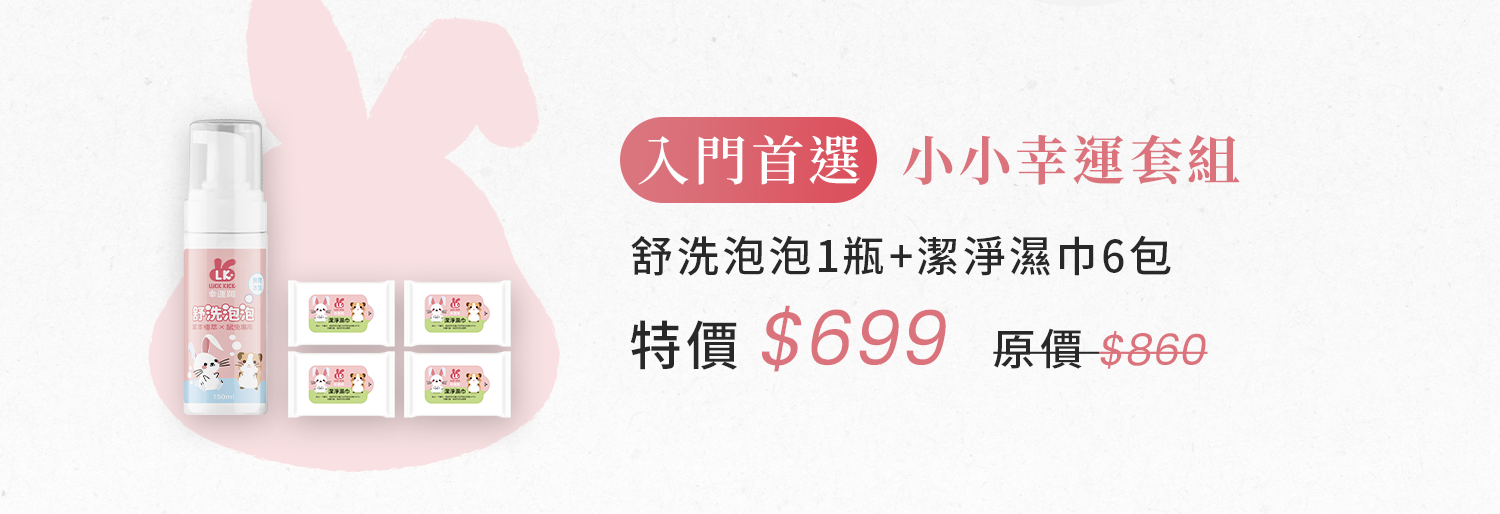 幸運踢專為鼠兔的皮膚與清潔習性重新設計日常清潔方案。