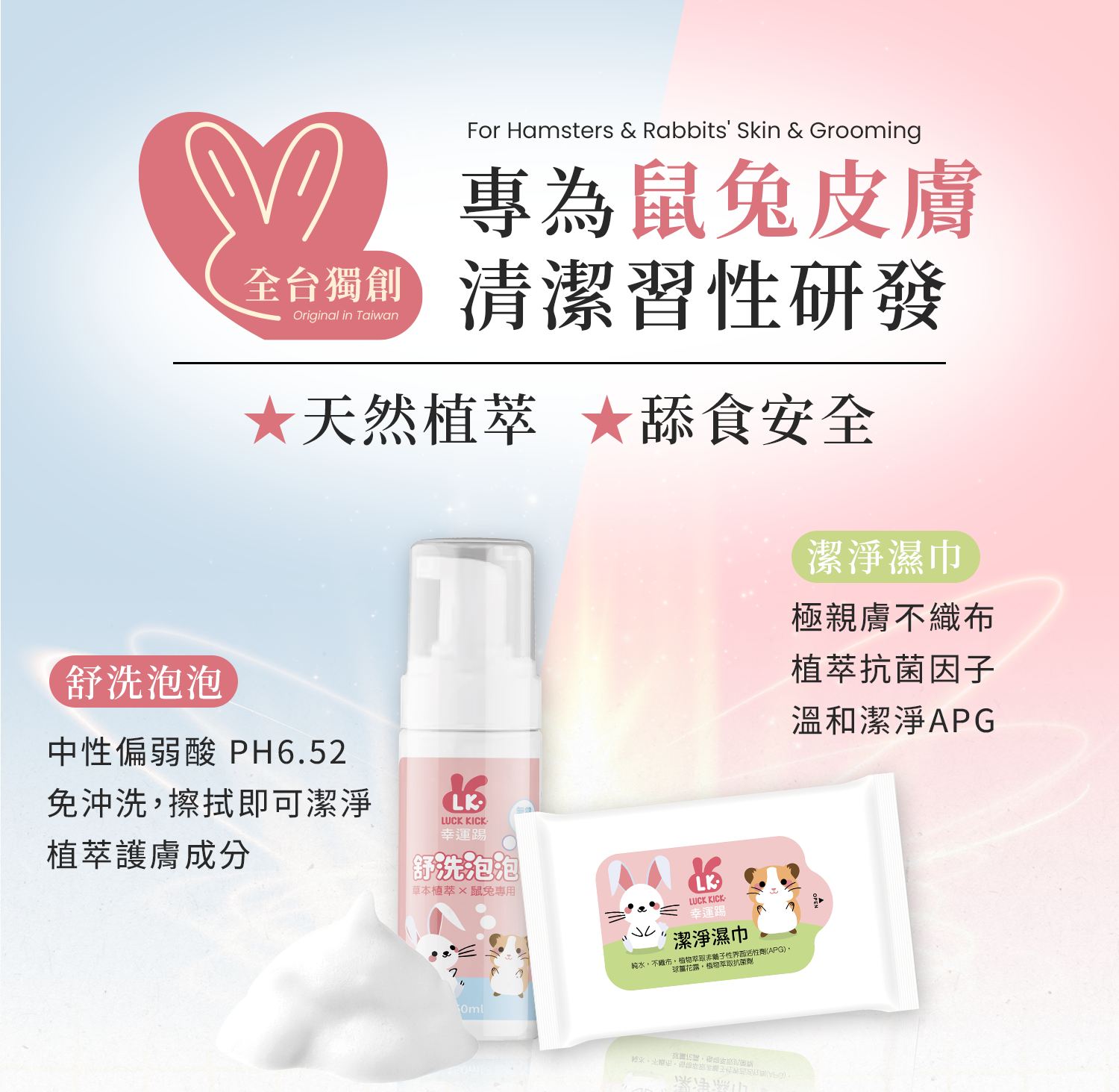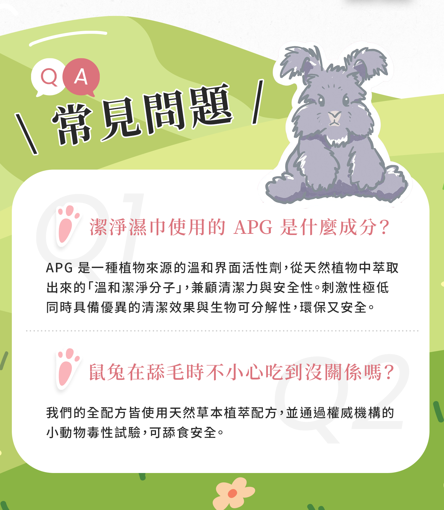 專為鼠兔皮膚結構與舔毛習性設計的日常潔淨濕巾。