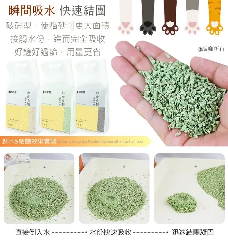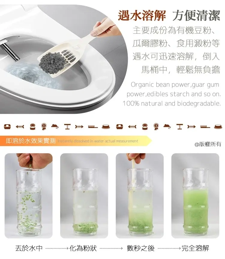 ▸可生物分解,對於環境更好採用天然豆渣壓製而成