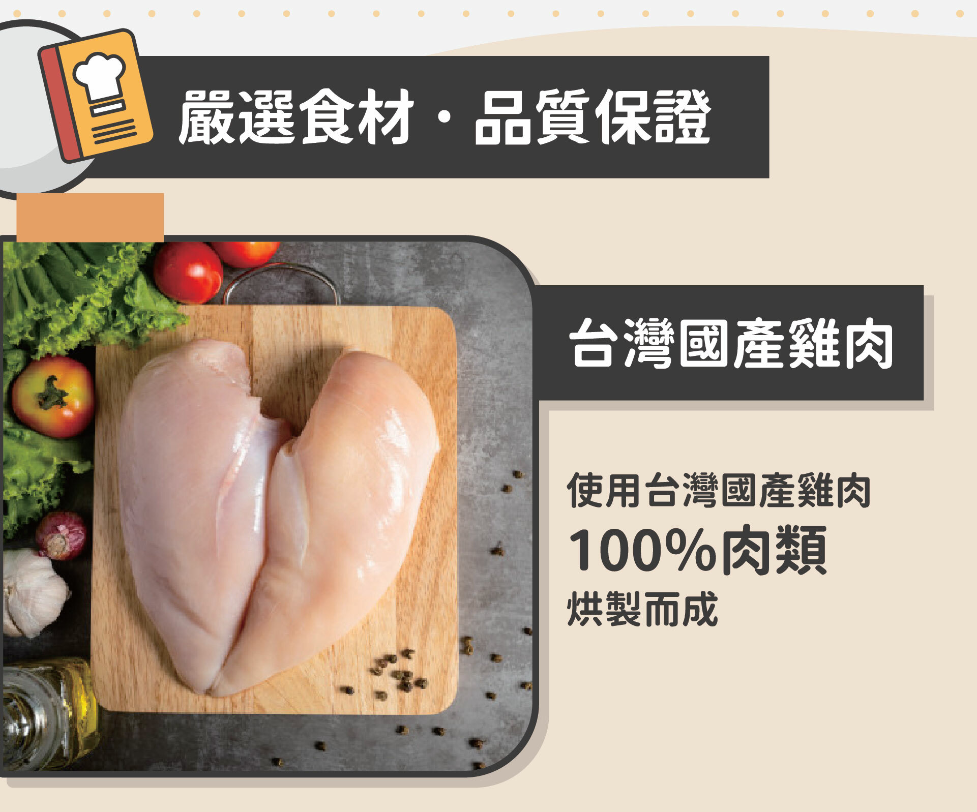 ▸ 100%肉類烘製而成,不添加大豆蛋白與澱粉