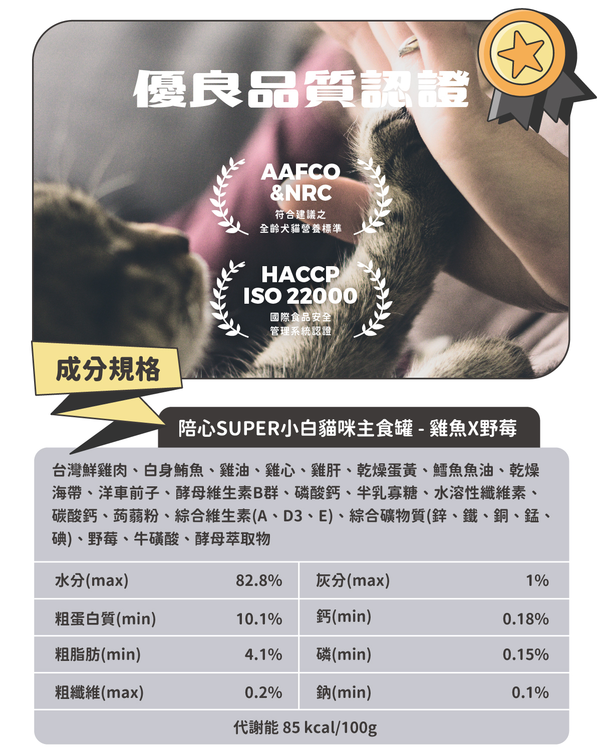 ✔ 符合AAFCO&NRC建議之營養標準,適合全齡貓食用