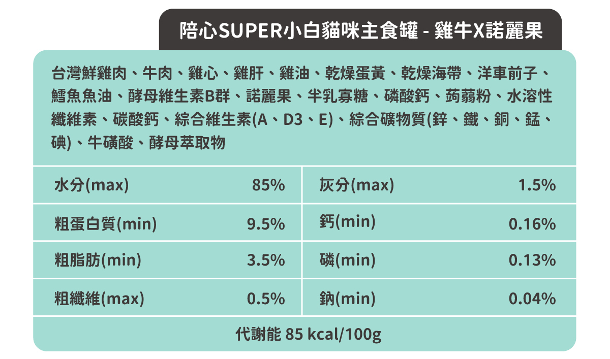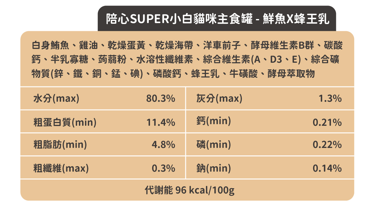 ✔ 均衡的營養,95%動物性成份、3%營養素補充