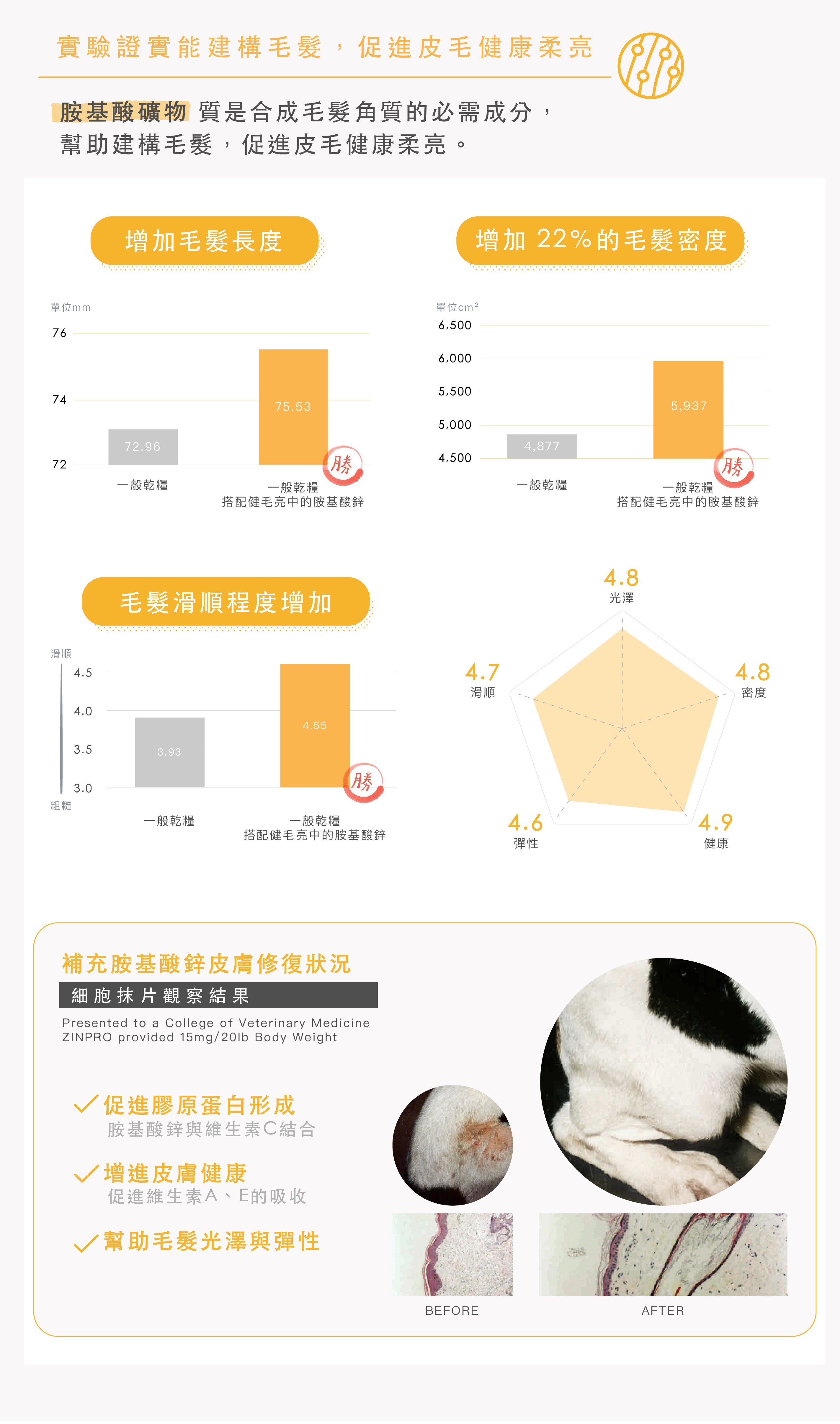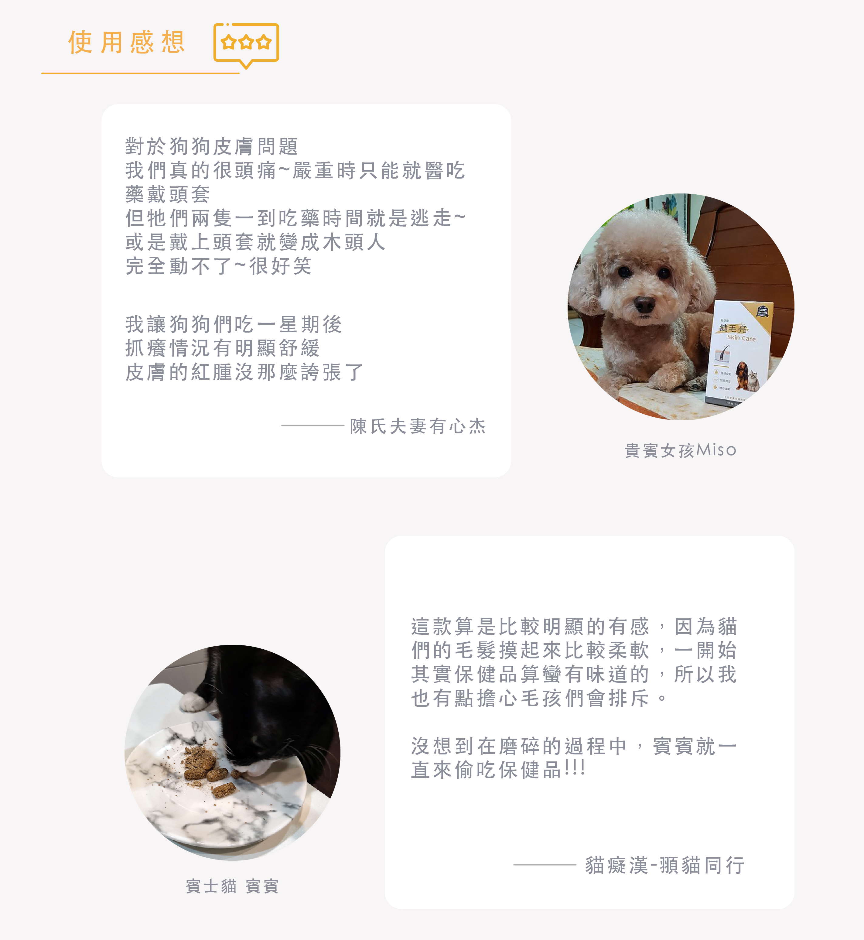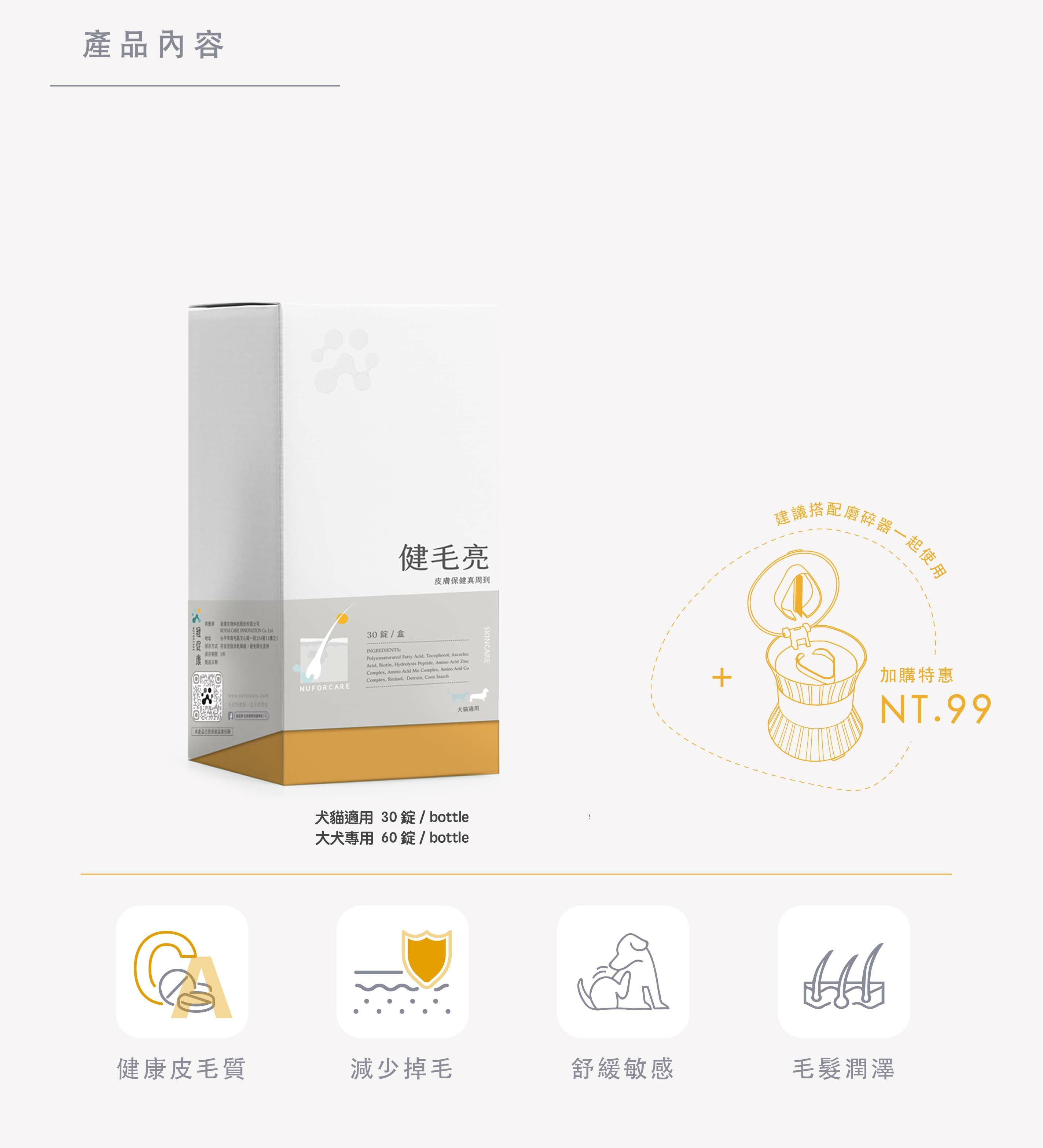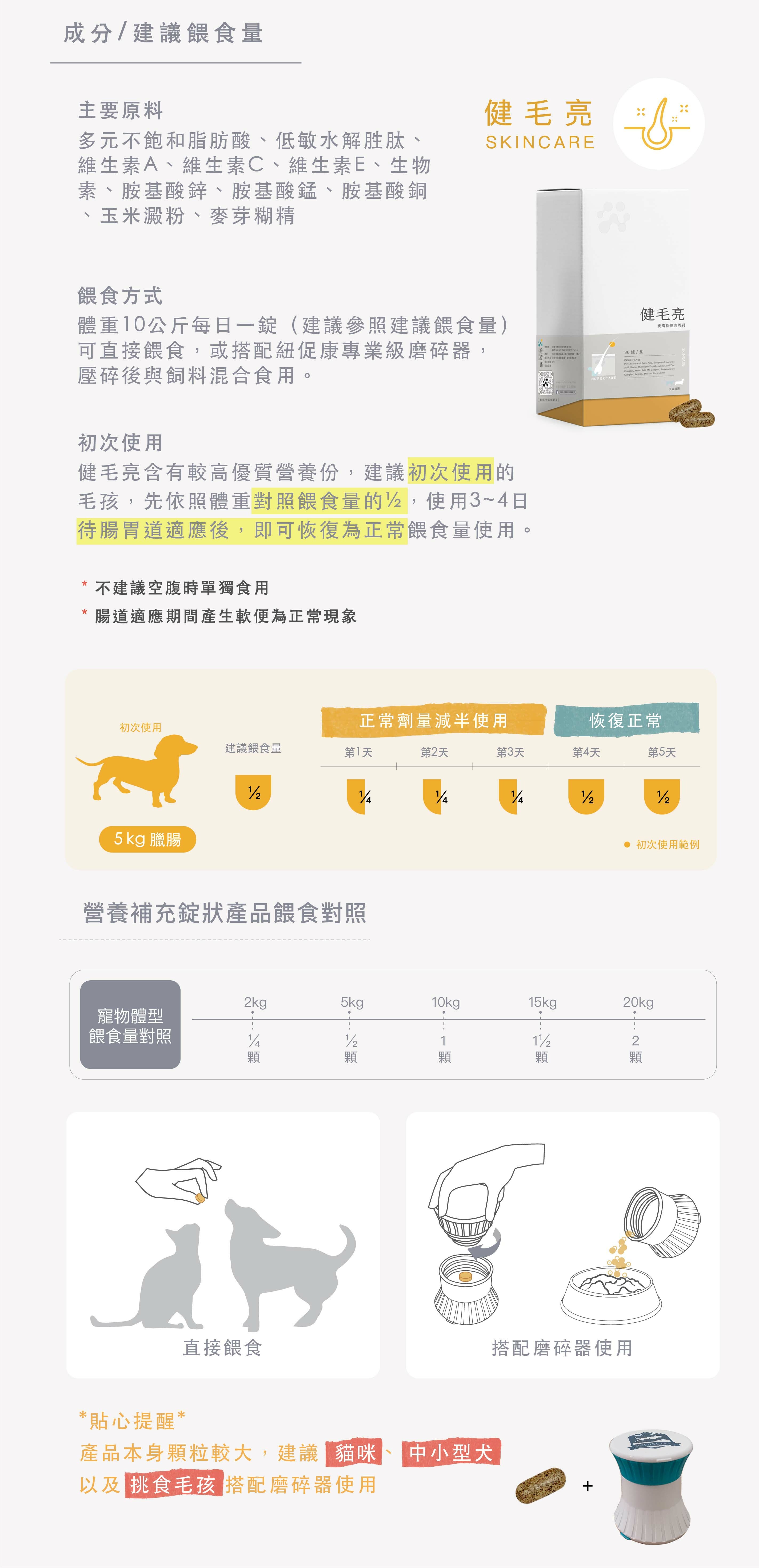 促進毛孩皮膚毛髮健康柔亮,加強毛髮彈性,防止毛髮斷裂
