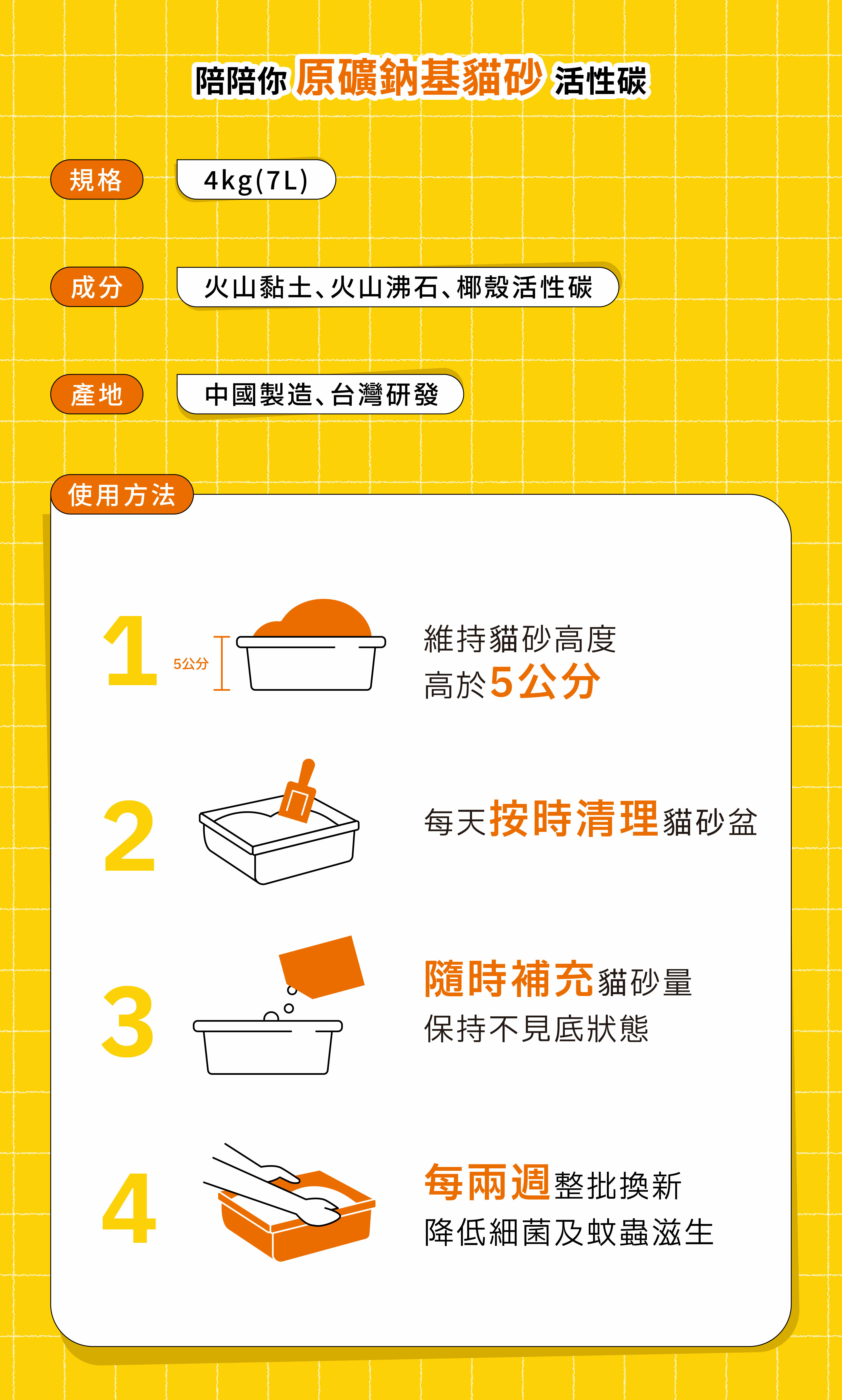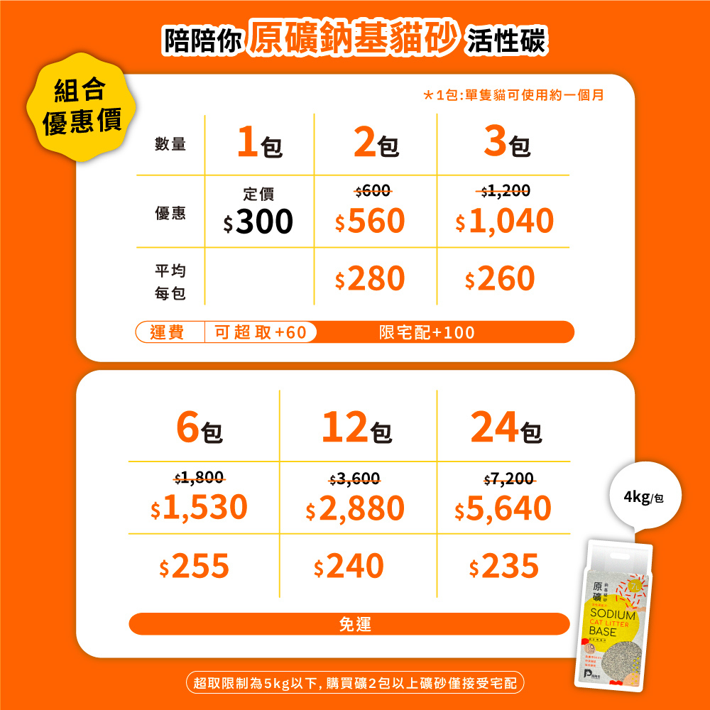 ●原礦鈉基貓砂/活性碳為真空包裝袋,在運送過程中可能會有漏氣現象,屬於正常情況,品質不會受到影響,不屬於瑕疵的問題呦!本產品規格重量4kg(4L)呦