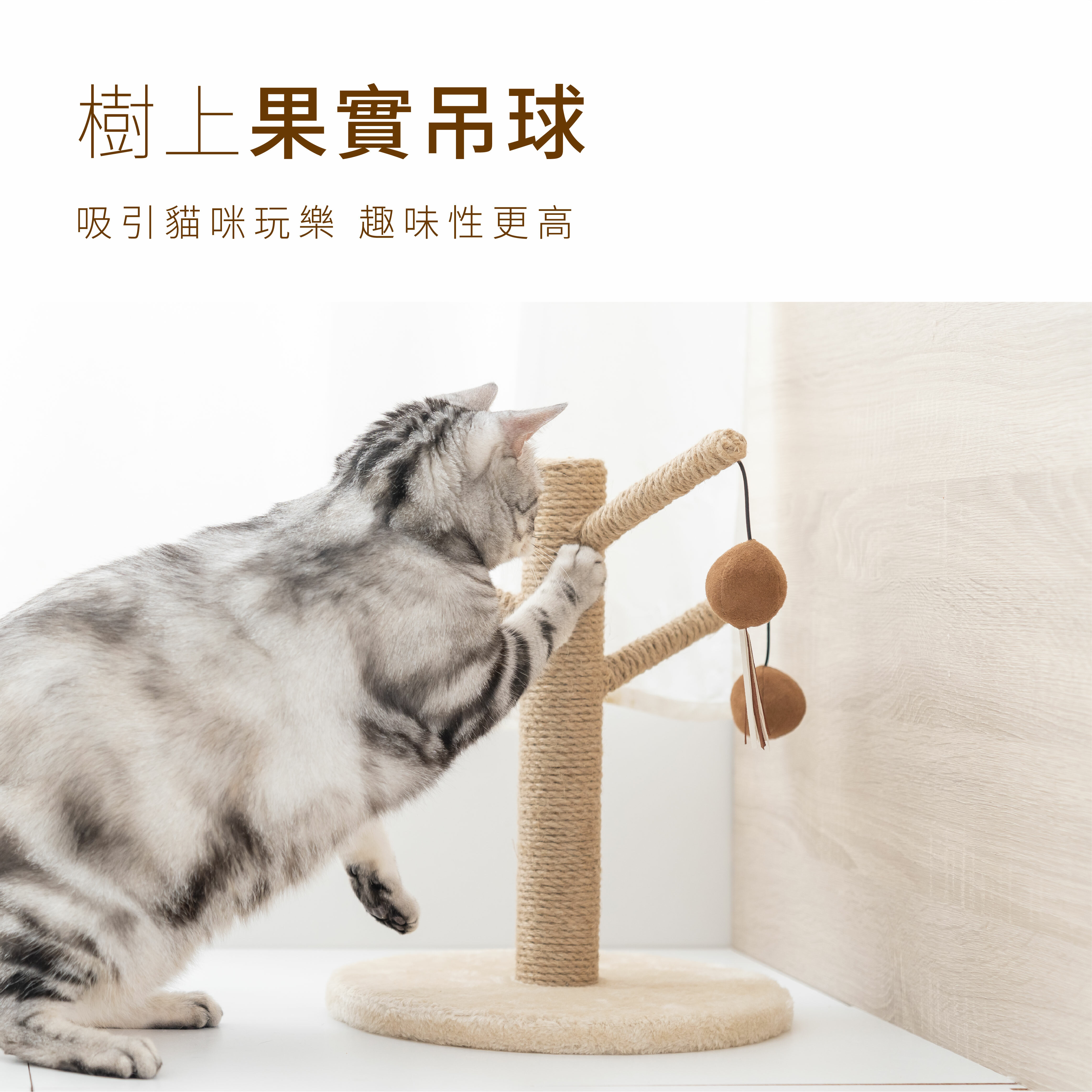 ●小吊球設計 吸引貓主靠近 激發貓孩兒興致 增添趣味性