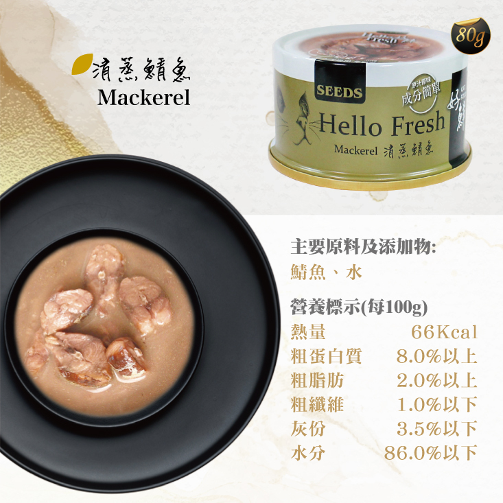 原料只有生鮮魚(肉)&水,無膠、無色素、無香料,鮮生肉直接封罐蒸煮,鎖住鮮肉原汁,絕非一般煮熟後裝罐能比擬,保留了食物的原形及鮮甜,湯鮮味美贏得了貓咪的心。