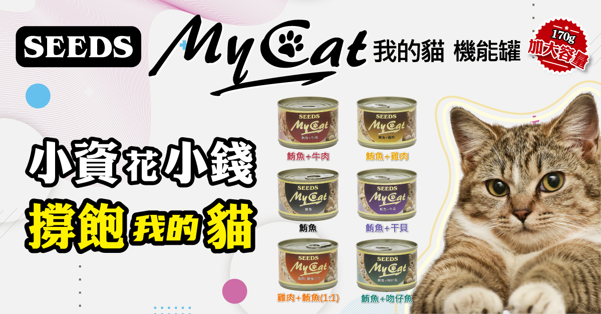 小資花小錢 ,撐飽我的貓,170g大容量系列 ,My Cat我的貓機能罐細緻鮪魚添加機能配方,另添加維他命E,是愛貓的愛。