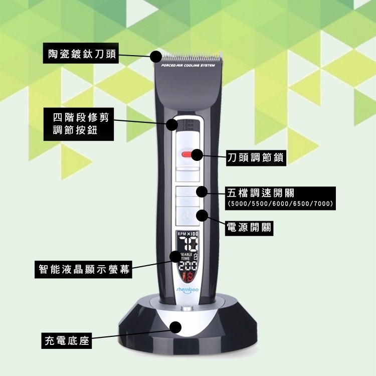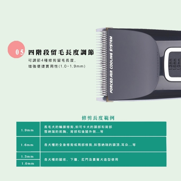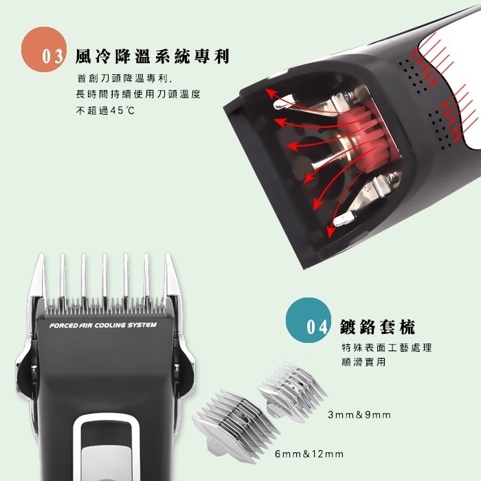 。內建渦輪增壓風扇,自動降溫,使刀頭不易發燙,給寶貝最清爽的呵護