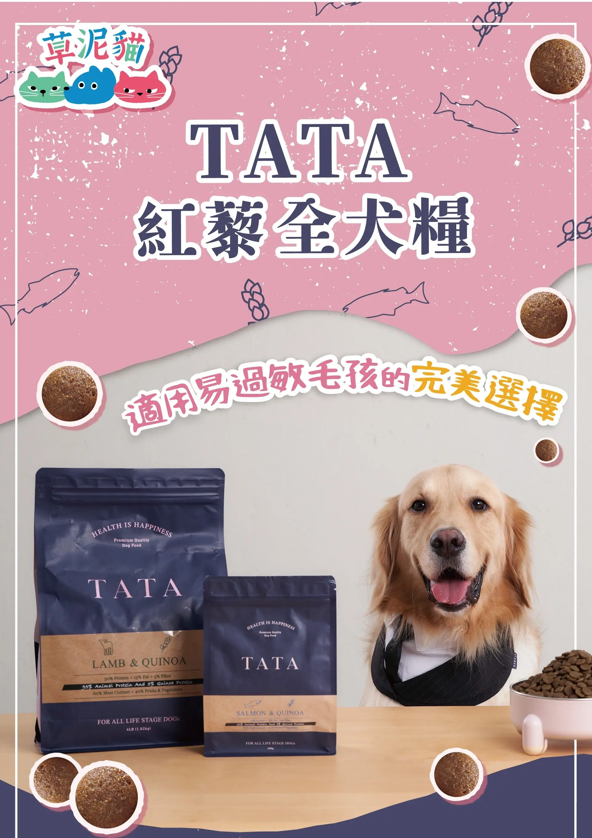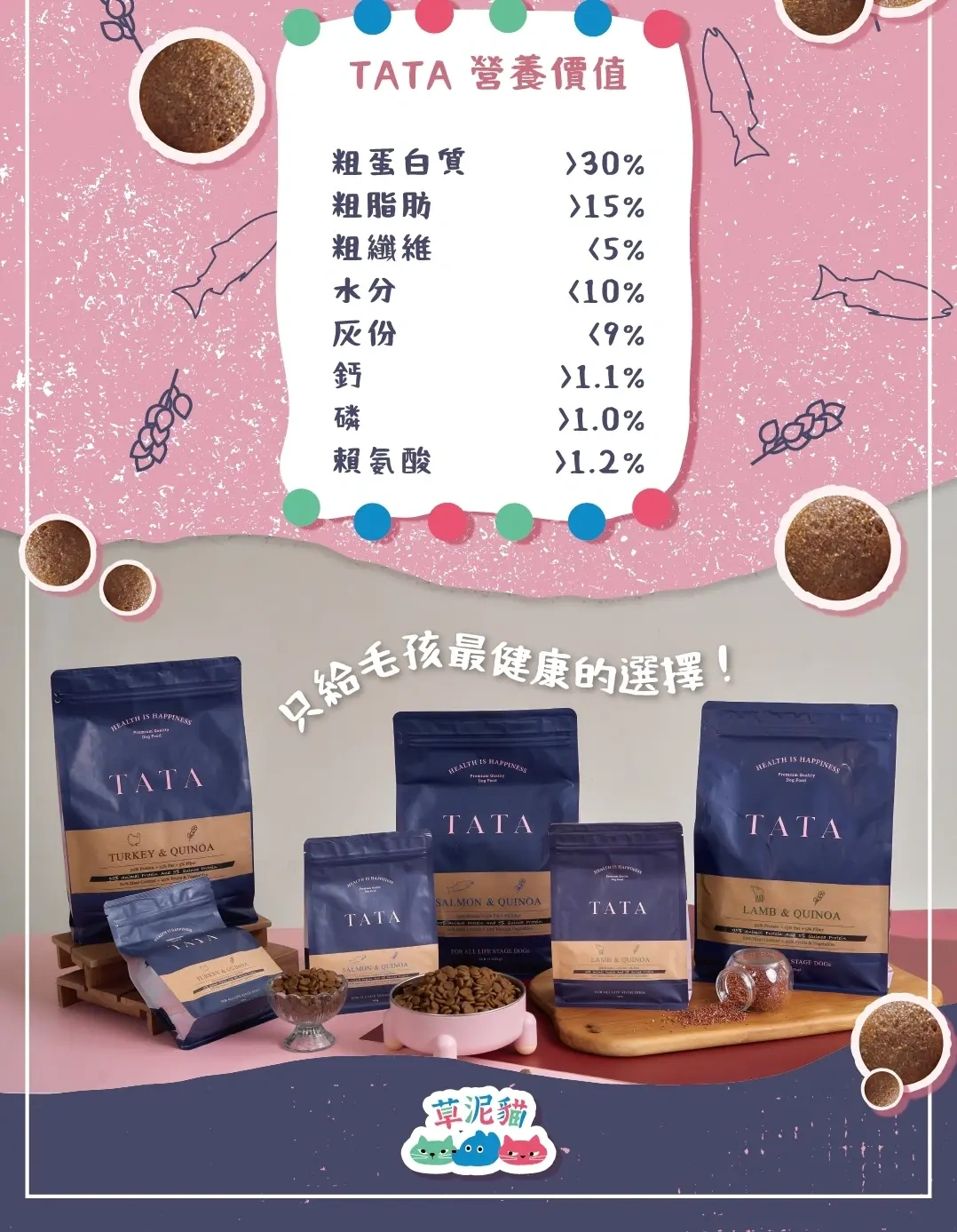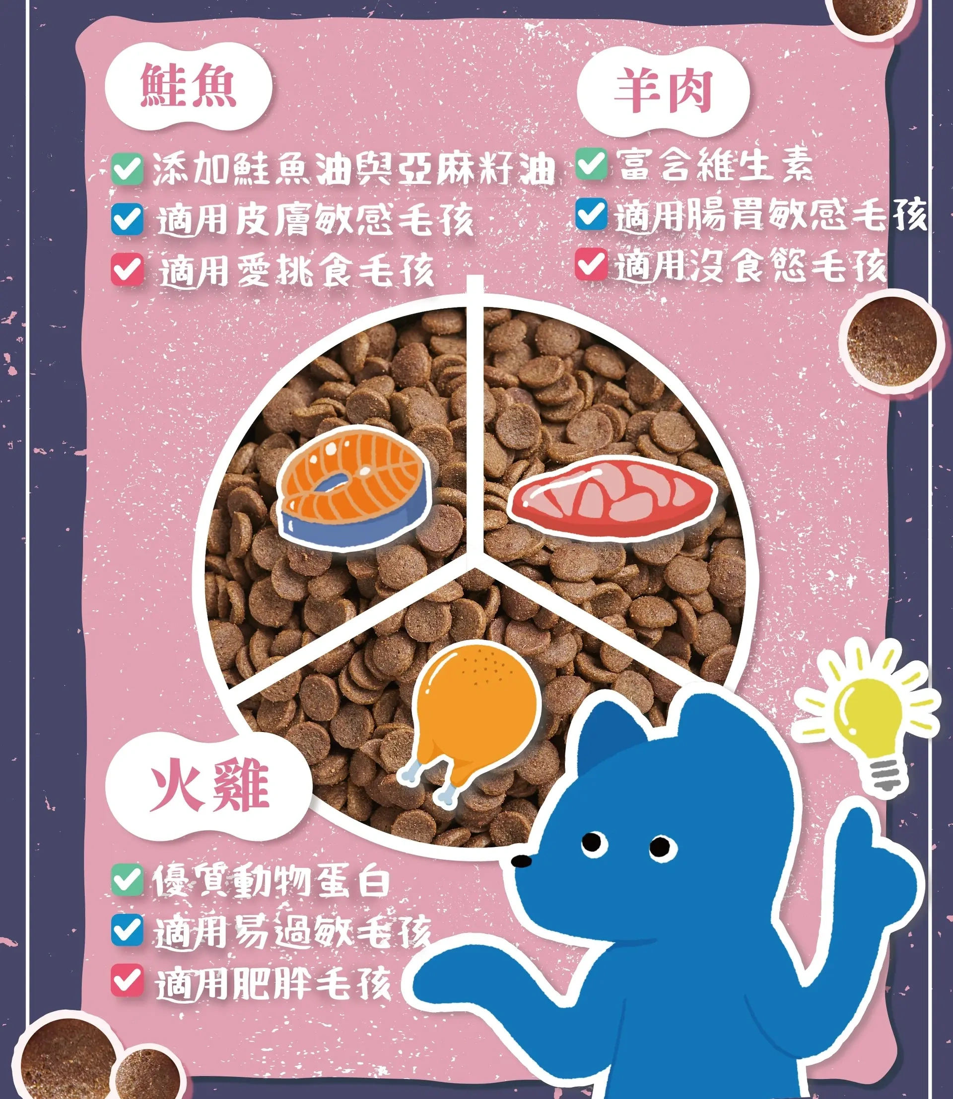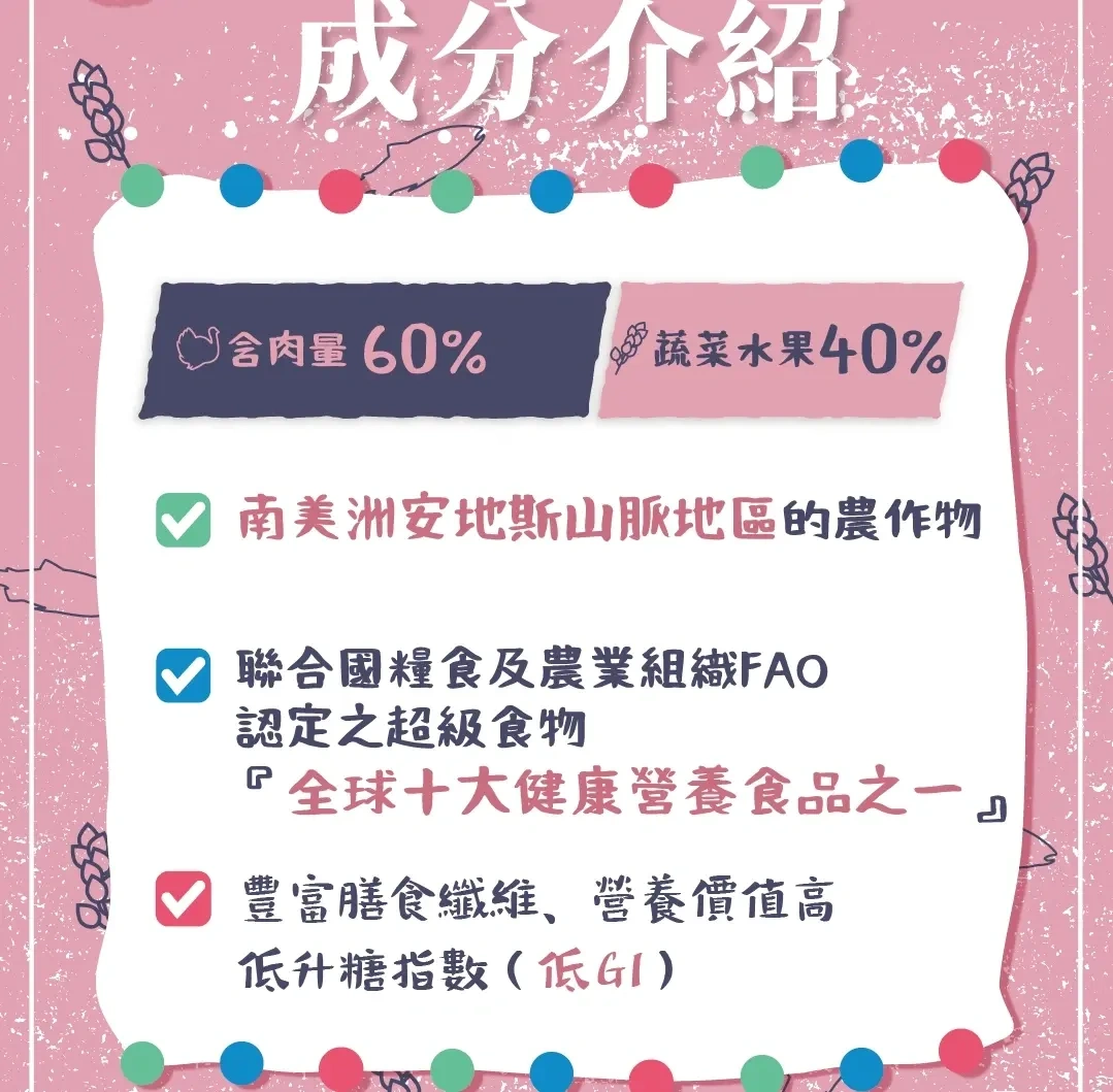 高達 60% 的含肉量及 40% 的蔬菜水果
