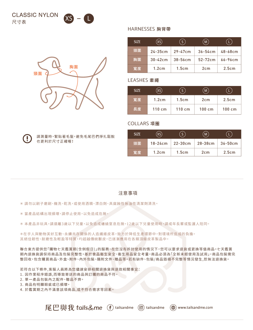【尾巴與我】經典尼龍帶項圈- XS 尺寸