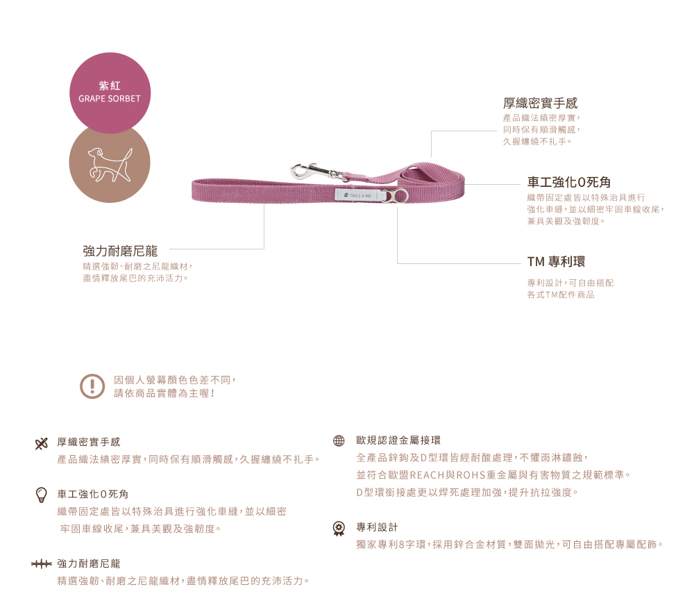 強力耐磨尼龍-精選強韌、耐磨之尼龍織材,盡情釋放尾巴的充沛活力。