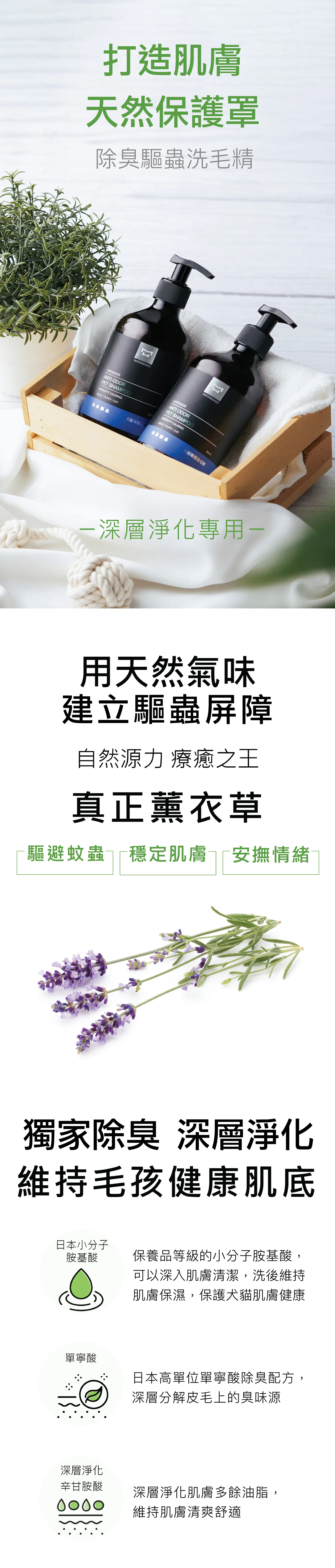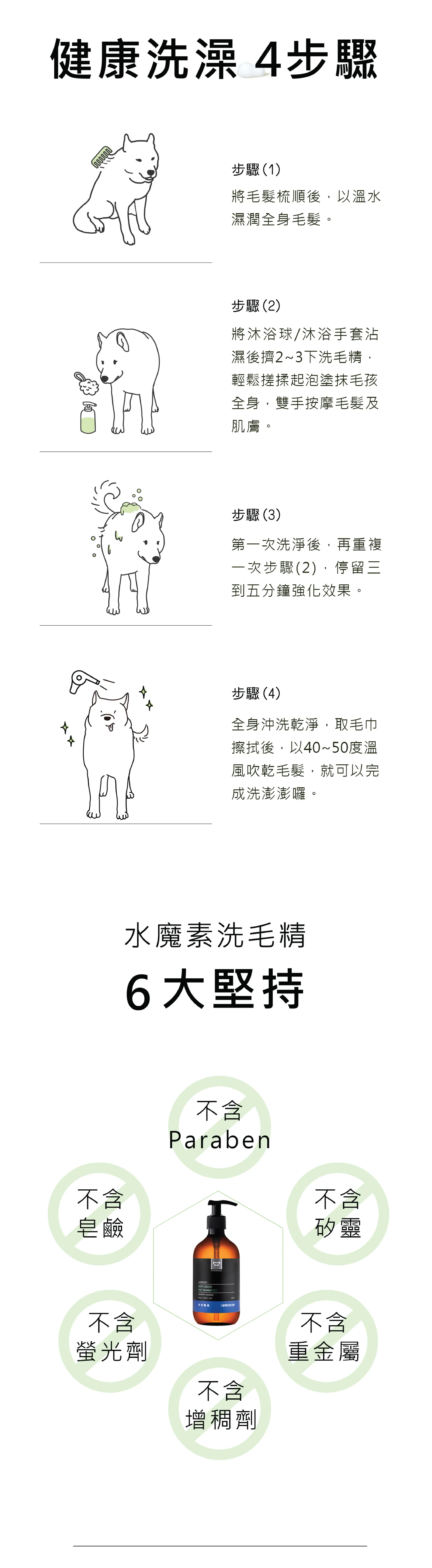 ● 『除臭驅蟲洗毛精』是水魔素專為油性肌膚狗狗貓咪所推出的草本洗毛精。