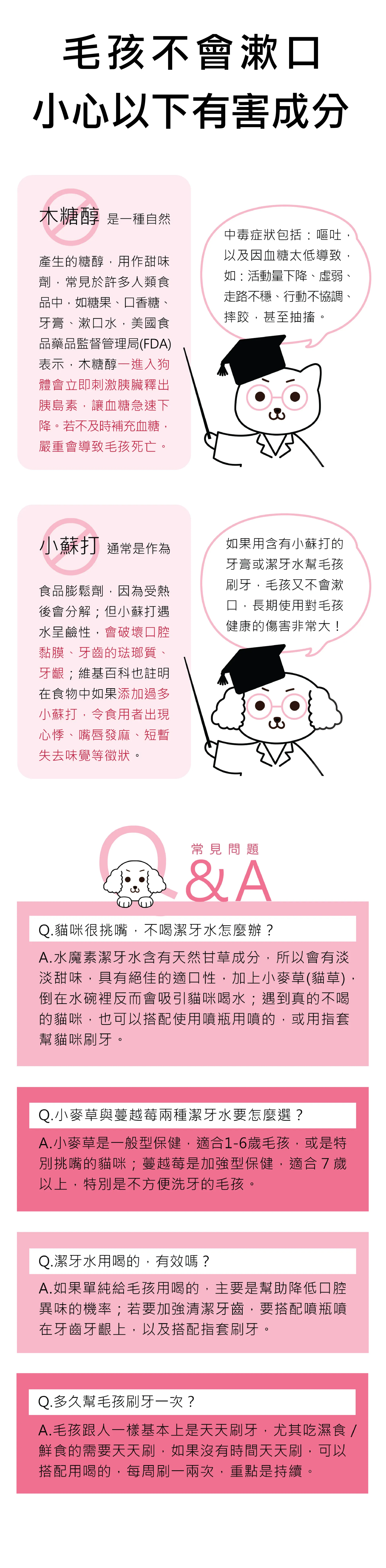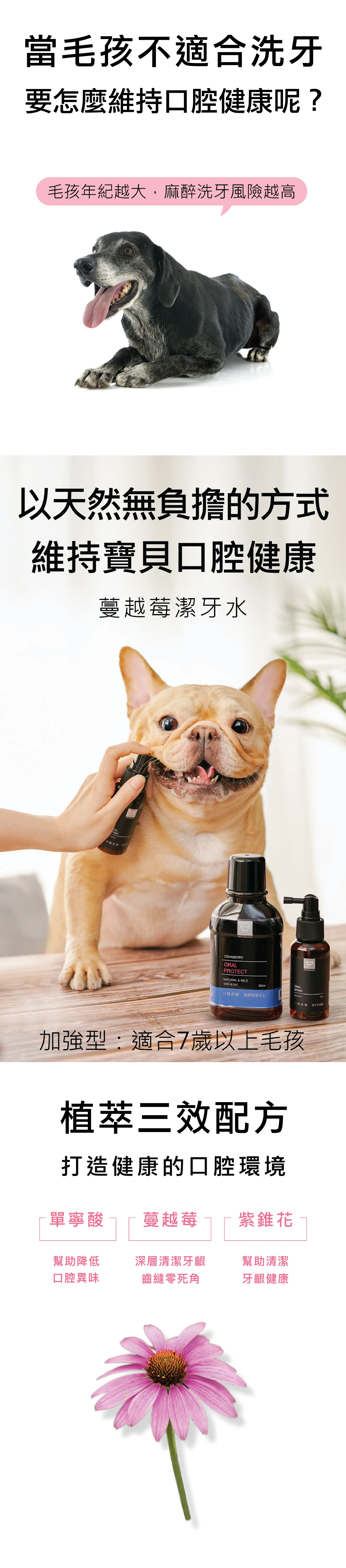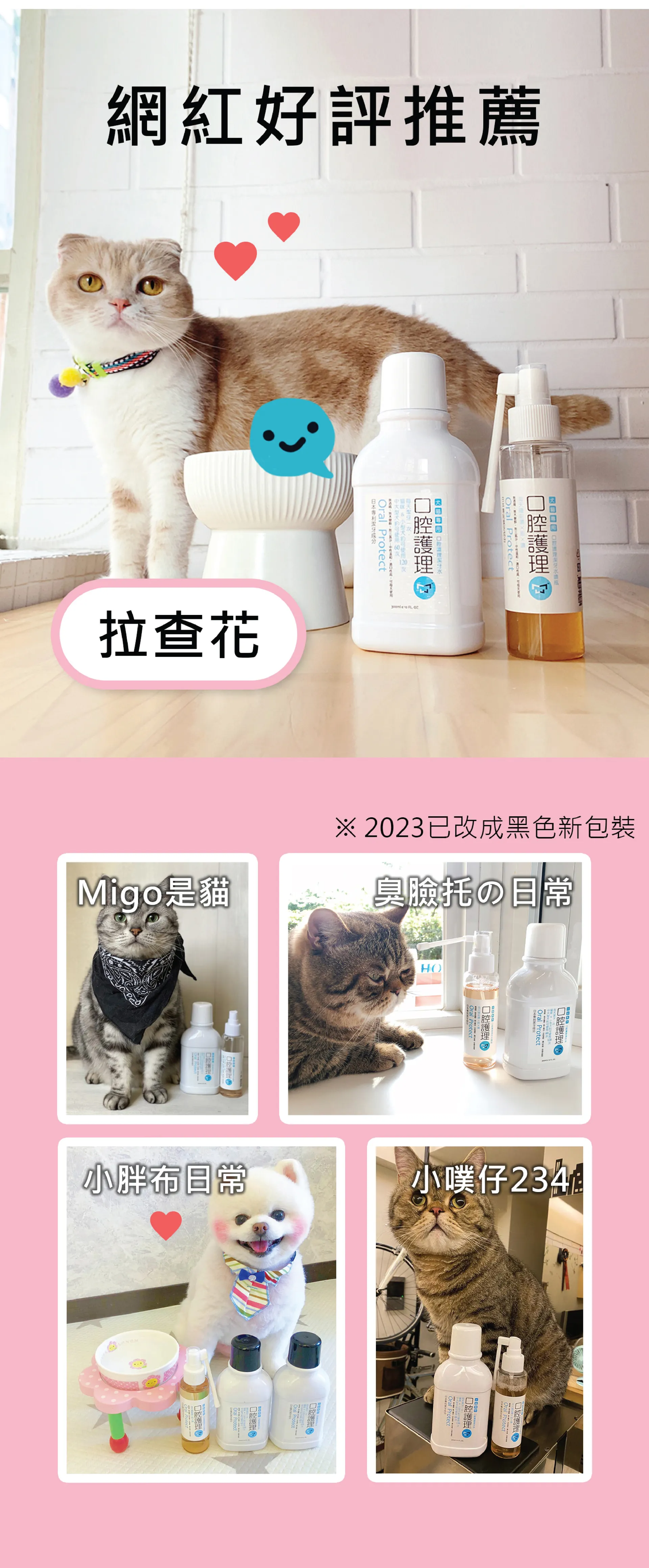 ● 水魔素針對貓咪狗狗潔牙再升級,「單寧酸+紫錐花+蔓越莓」三效口腔護理清潔配方