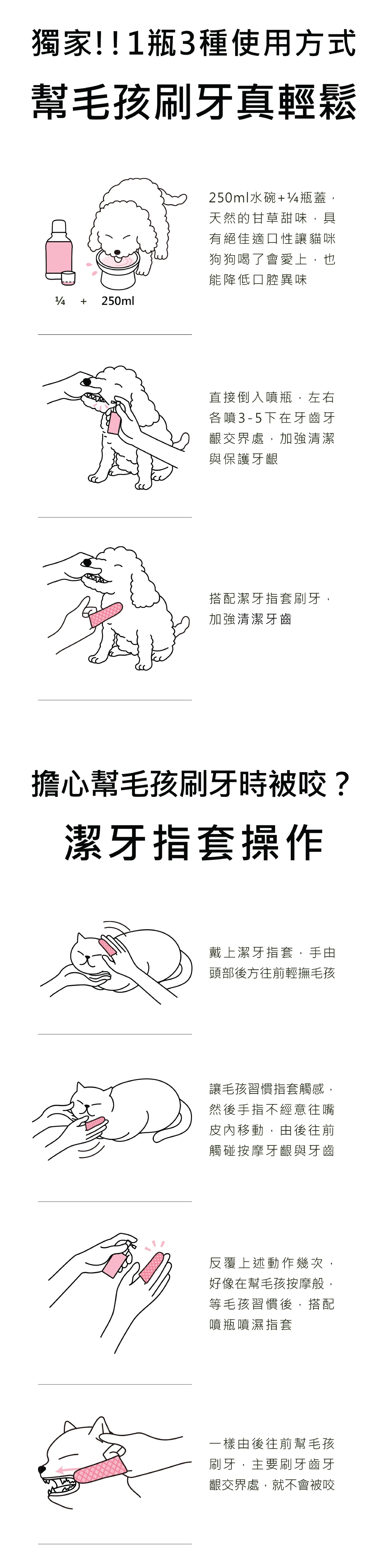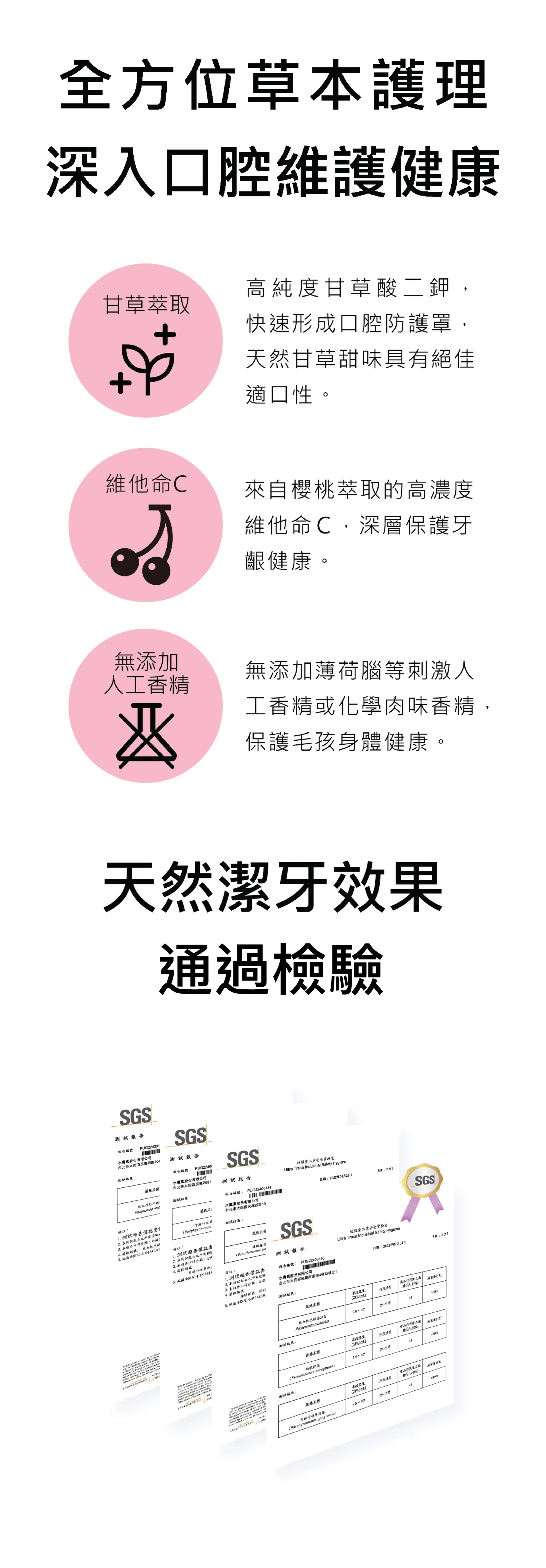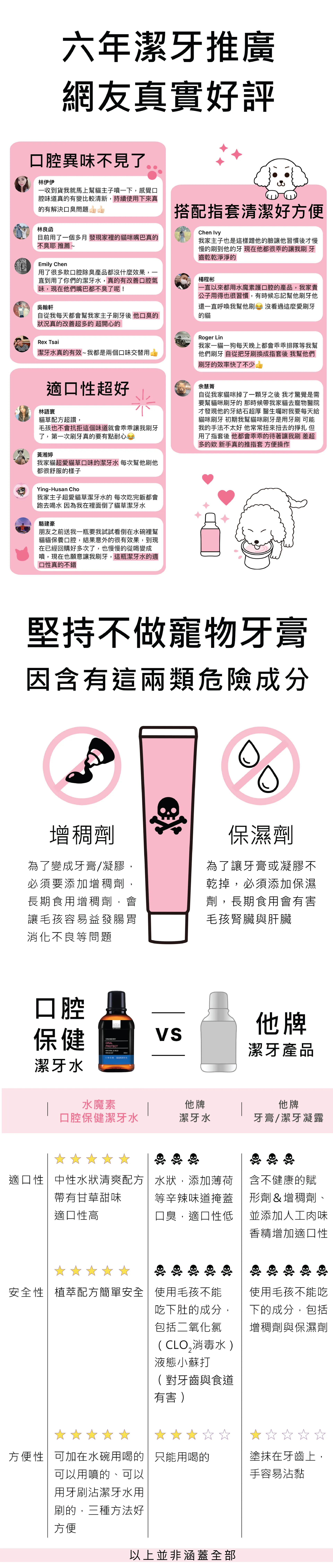 ● 水魔素針對貓咪狗狗潔牙再升級,「單寧酸+紫錐花+蔓越莓」三效口腔護理清潔配方
