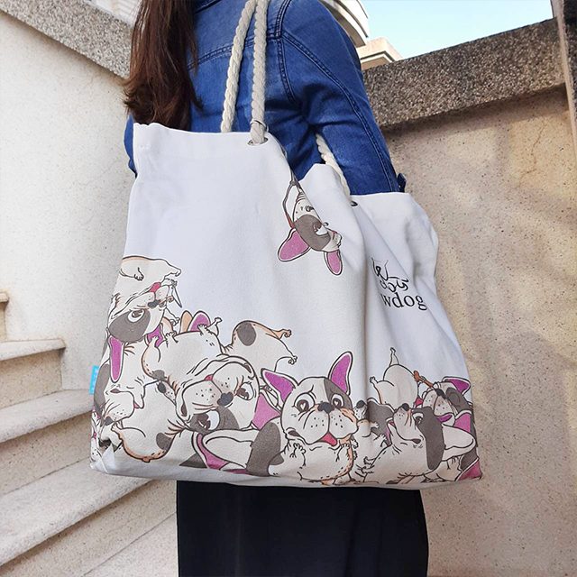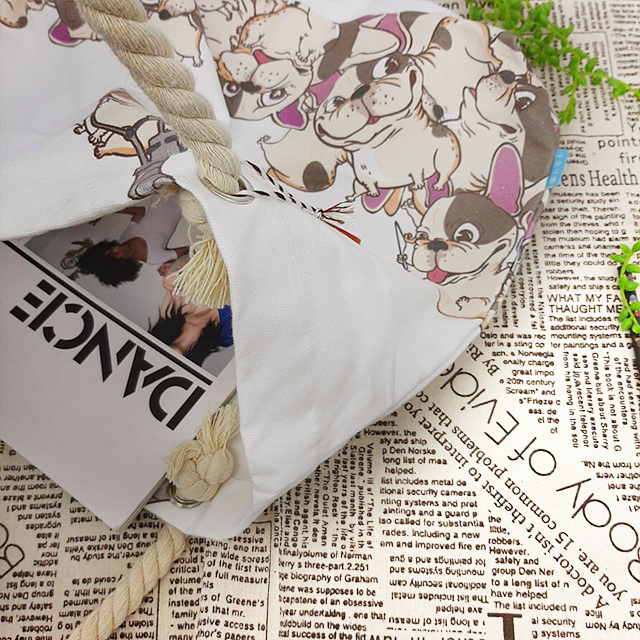 ● 帆布材質搭配麻繩提把 休閒穿搭沒煩惱