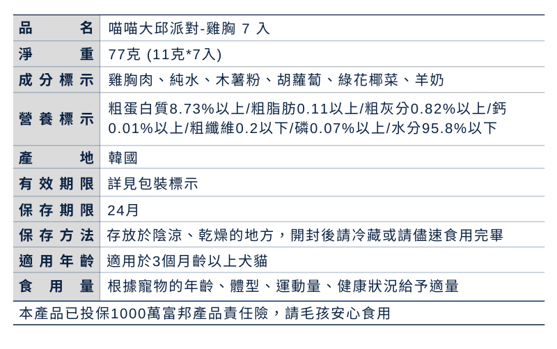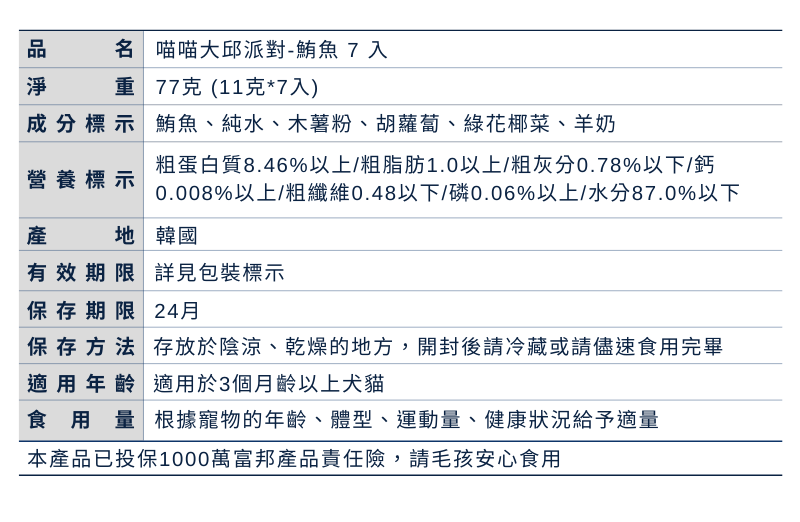 每包含有 7 條口味濃郁的肉泥條,入口即化,是補水補營養的首選。