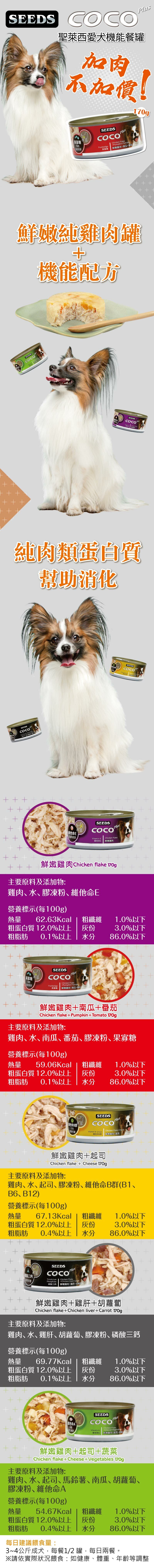 170g大份量的COCO愛犬機能罐,提供愛犬純肉蛋白質,健康發育維持健康。