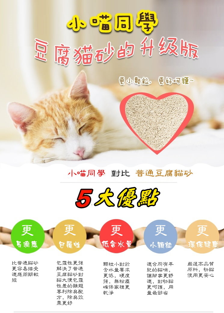 包覆性:包覆性更強,解決了普通豆腐貓砂對貓便便包覆性差的難題,專利除臭配方,除臭效果更好